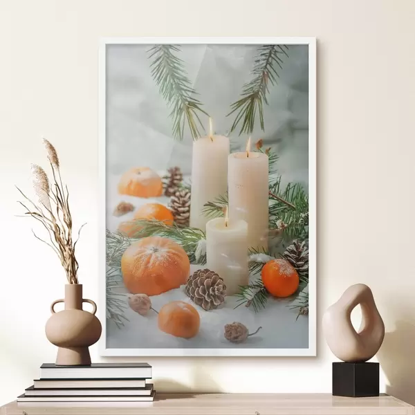 Poster Kaarsen, mandarijnen en dennenappels f46615