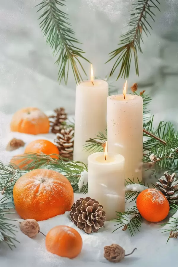 Poster Kaarsen, mandarijnen en dennenappels N° f46615