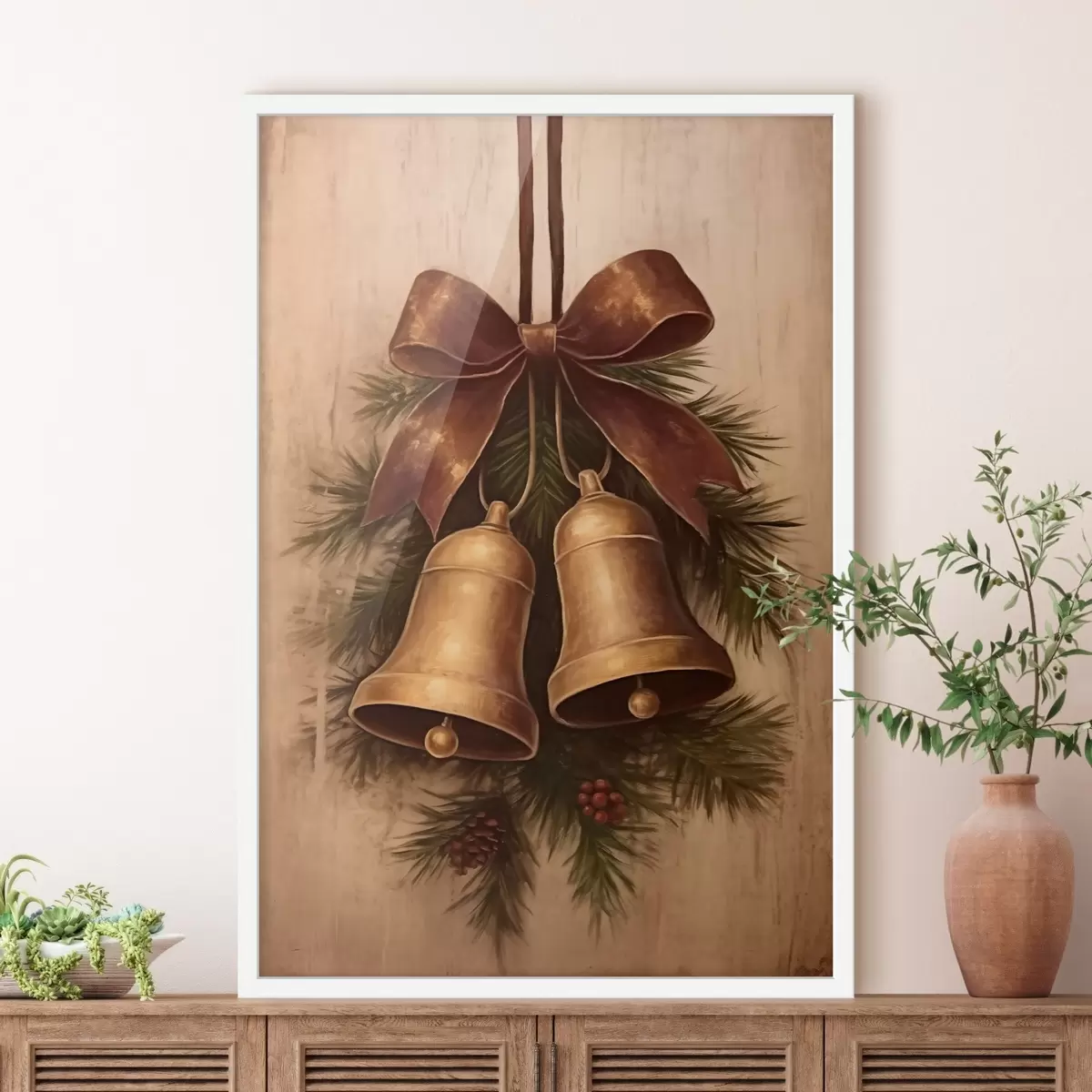 Poster Vintage kerstdecoratie met twee belletjes en een strik N° f46626