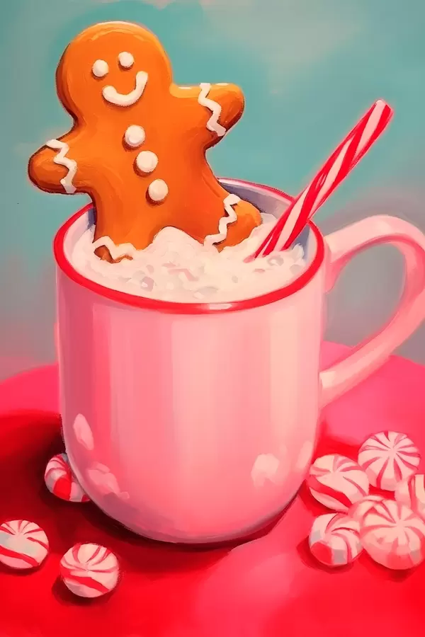 Poster Peperkoekmannetje in een kop warme chocolademelk N° f46635