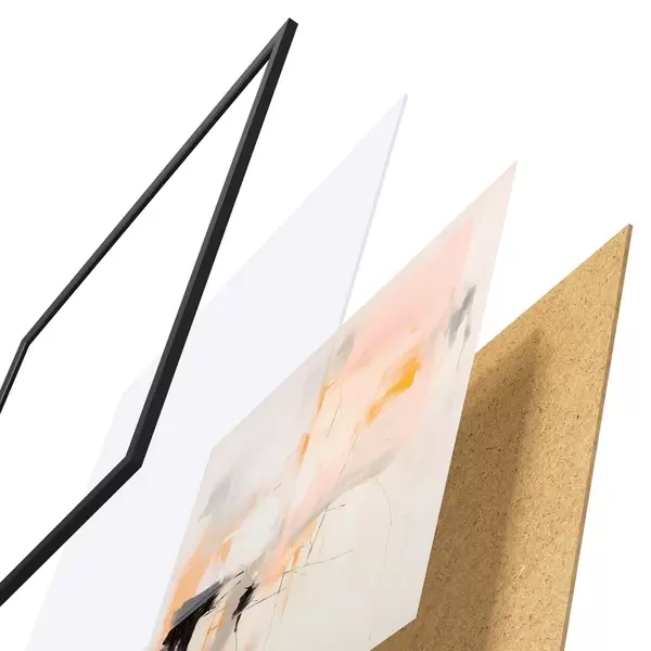 De poster bestaat uit een frame, plexiglas, geprinte afbeelding en spaanplaat achterkant. De poster kan meteen aan de muur worden gehangen dankzij de bevestigingen op de achterkant.