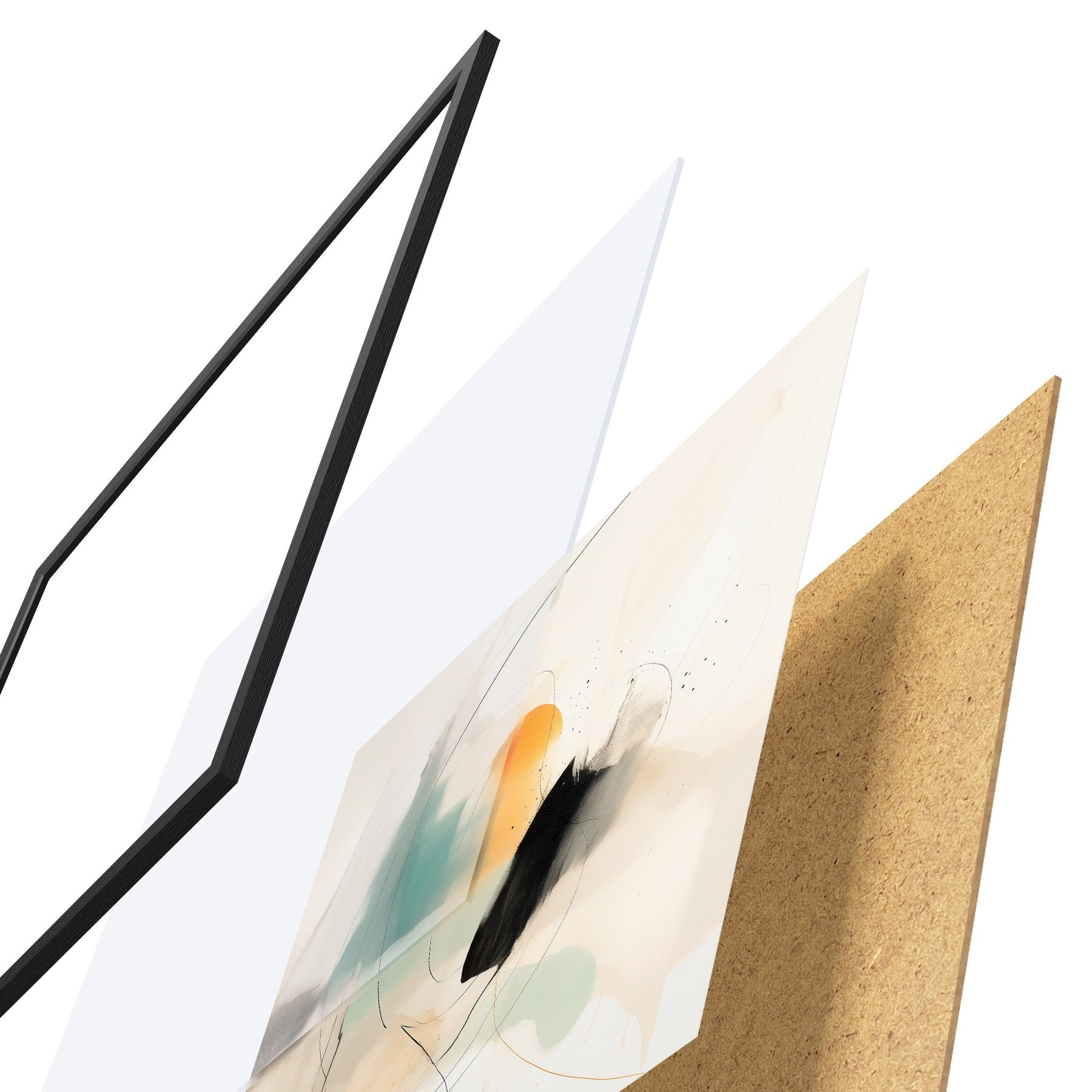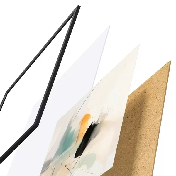 De poster bestaat uit een frame, plexiglas, geprinte afbeelding en spaanplaat achterkant. De poster kan meteen aan de muur worden gehangen dankzij de bevestigingen op de achterkant.