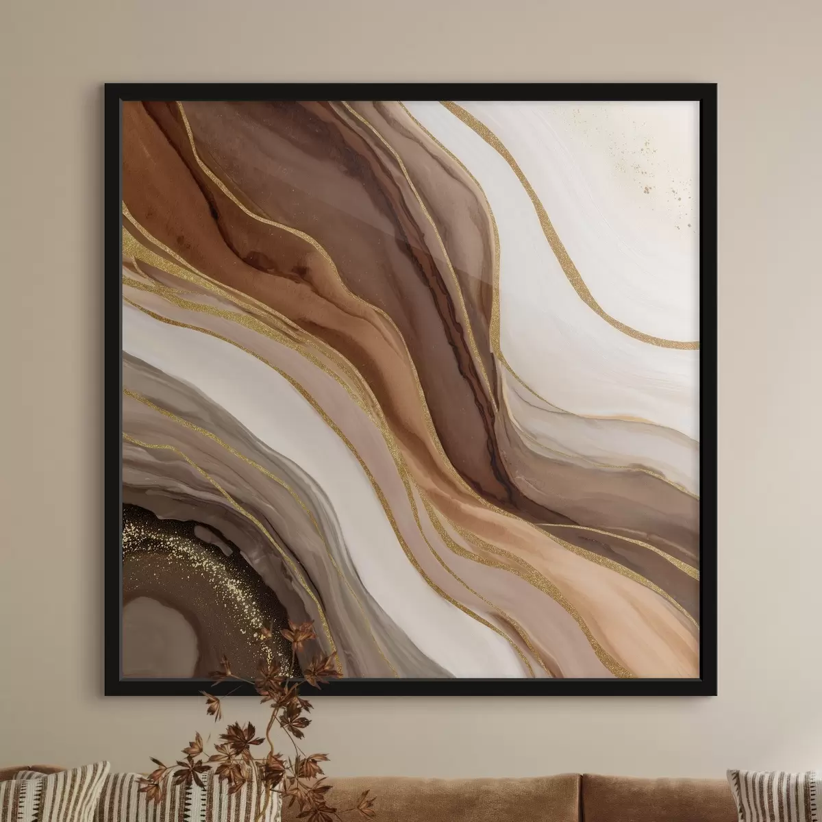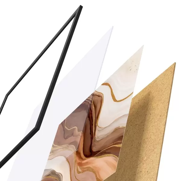De poster bestaat uit een frame, plexiglas, geprinte afbeelding en spaanplaat achterkant. De poster kan meteen aan de muur worden gehangen dankzij de bevestigingen op de achterkant.