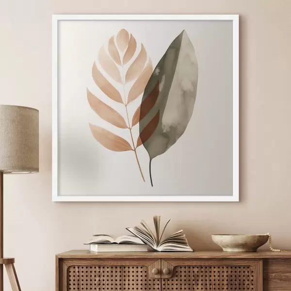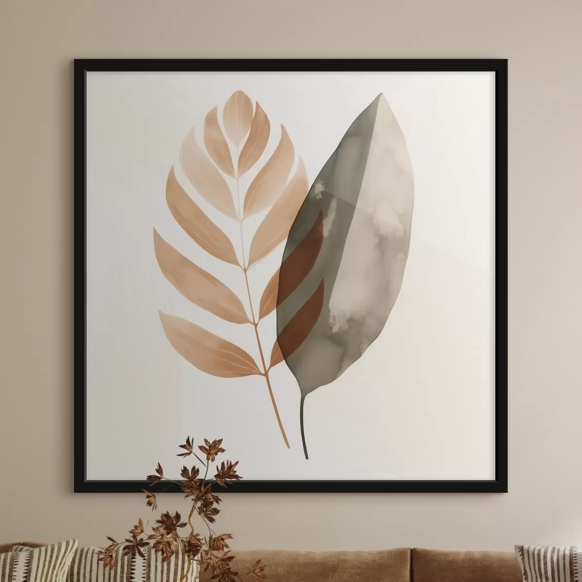 Poster Een duo van bladsilhouetten in een abstracte aquarelstijl N° f46645