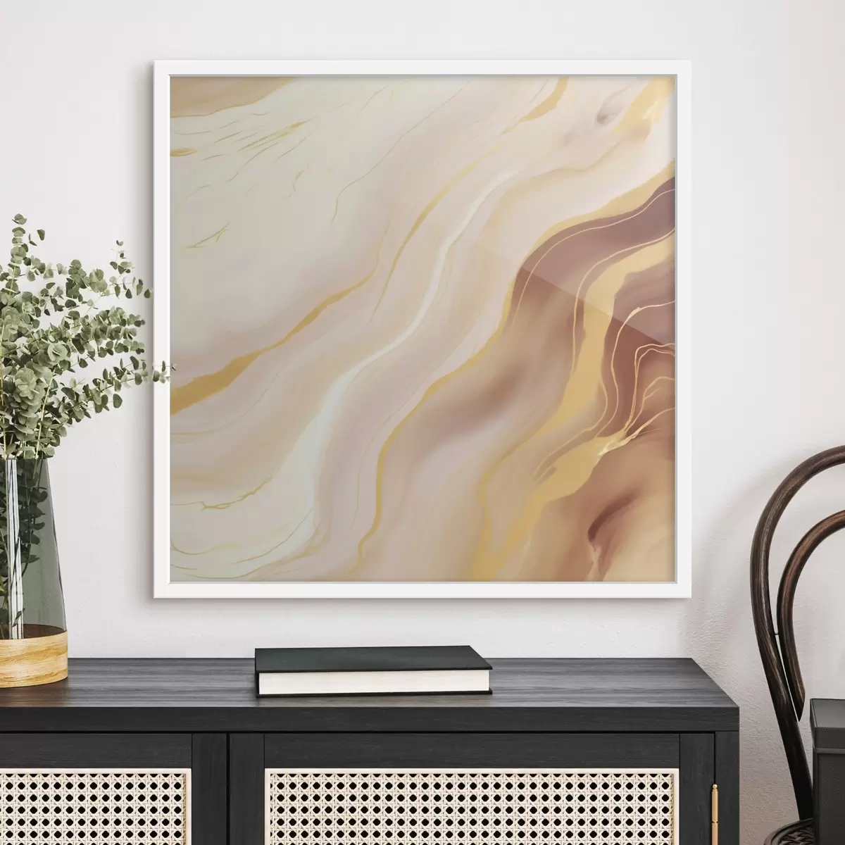 Je kunt het schilderij ophangen aan schroeven. Hiervoor leveren we bevestigingen bij onze foto's, zodat je de foto gemakkelijk kunt ophangen.