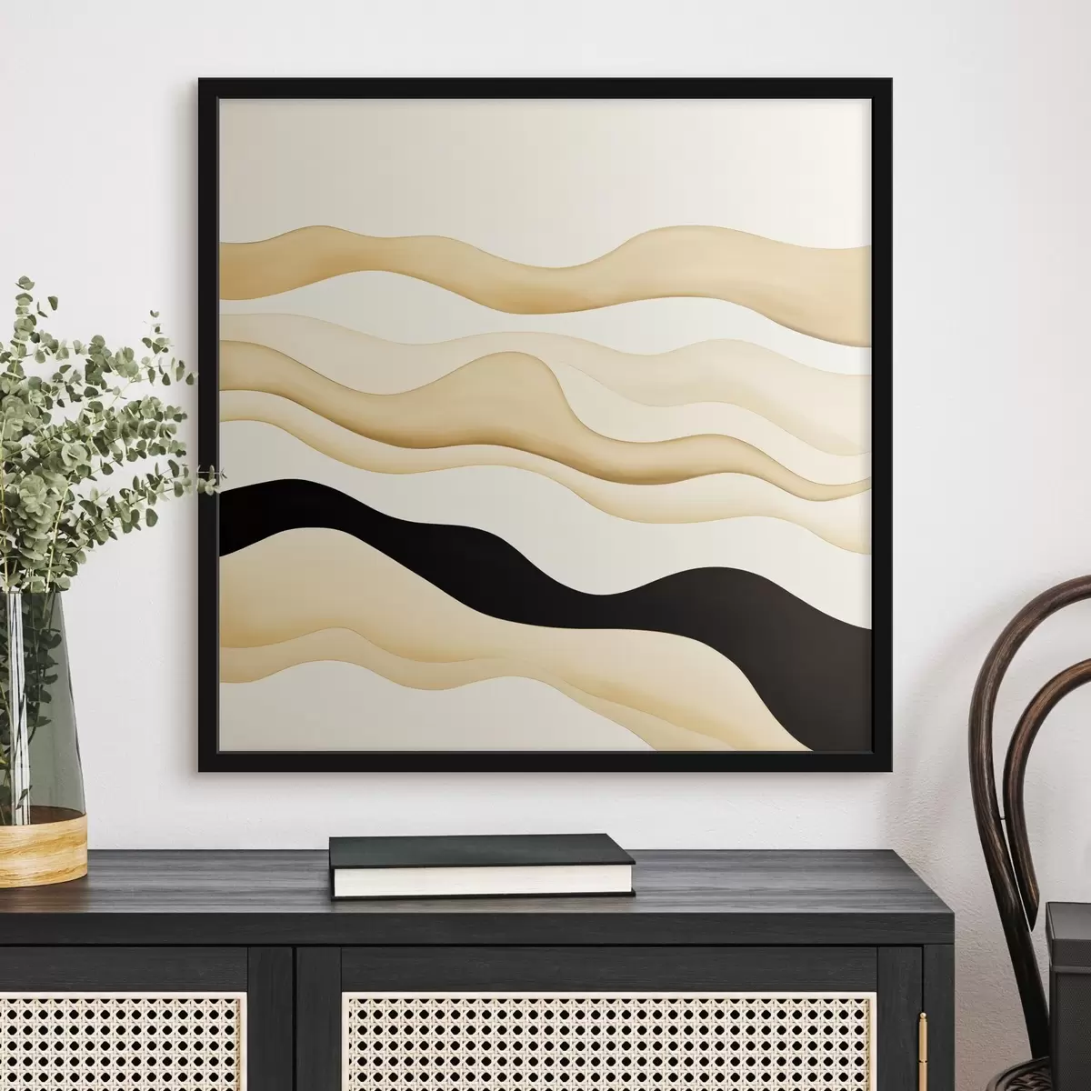 De poster bestaat uit een frame, plexiglas, geprinte afbeelding en spaanplaat achterkant. De poster kan meteen aan de muur worden gehangen dankzij de bevestigingen op de achterkant.