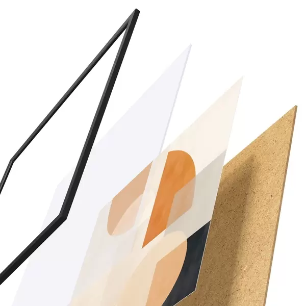 De poster bestaat uit een frame, plexiglas, geprinte afbeelding en spaanplaat achterkant. De poster kan meteen aan de muur worden gehangen dankzij de bevestigingen op de achterkant.