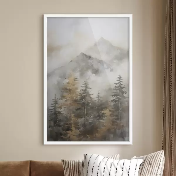 Poster Bos tegen de achtergrond van bergen imitatie van schilderij N° f46670