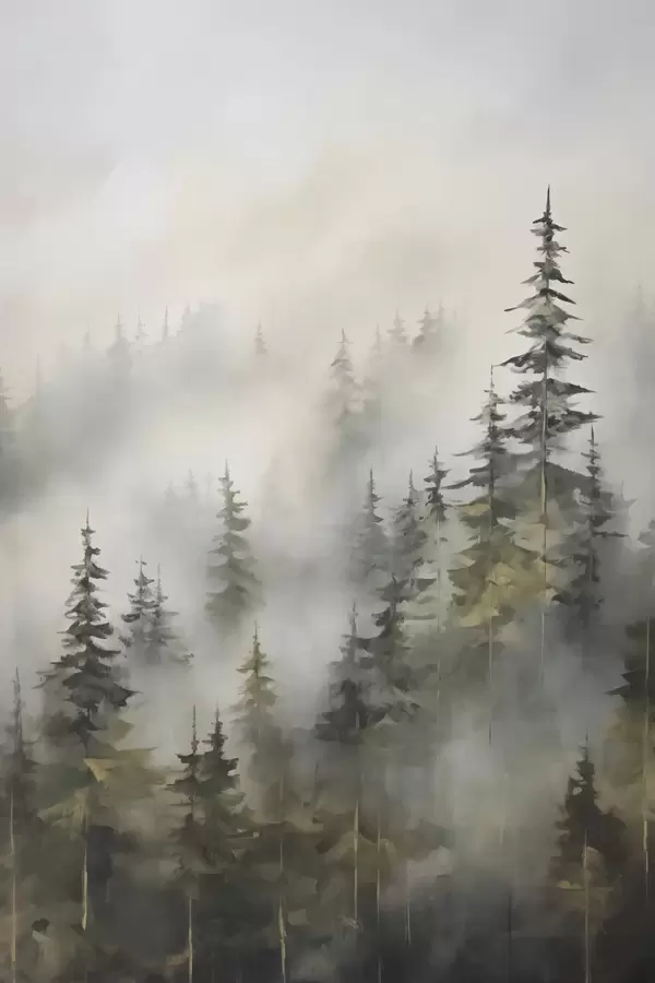 Poster Bos in de mist imitatie van schilderij N° f46671