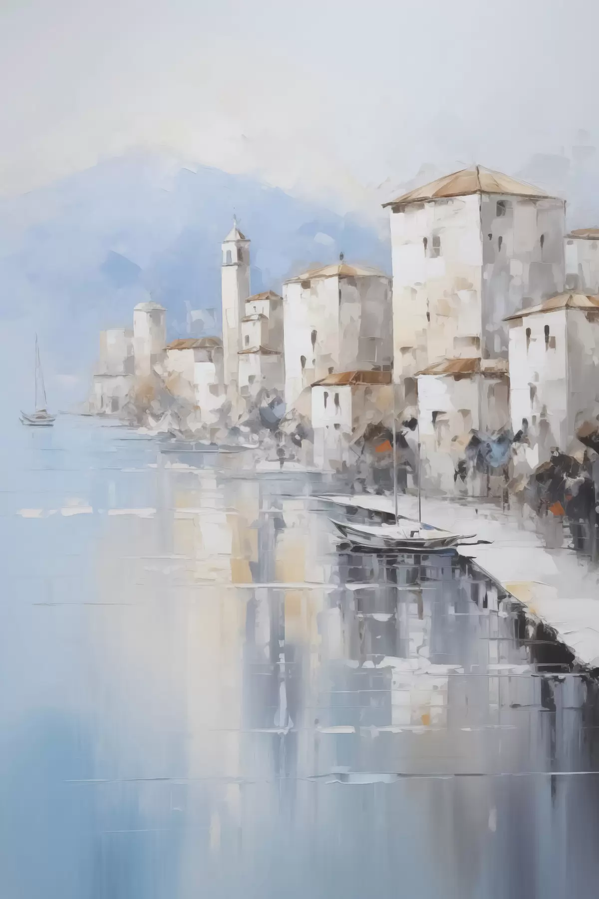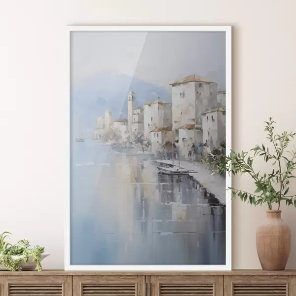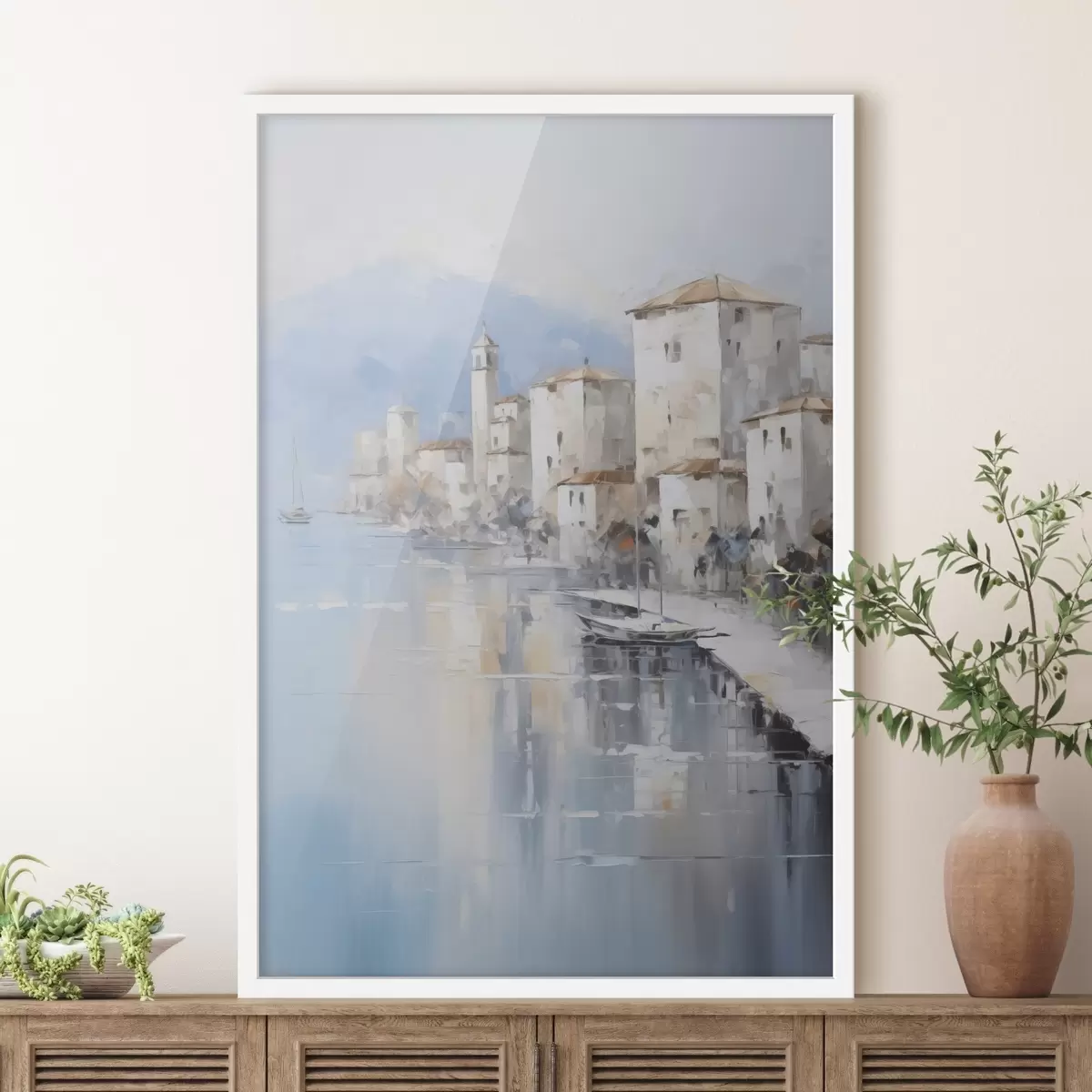 Poster Abstracte huizen aan de baai imitatie van schilderij N° f46673