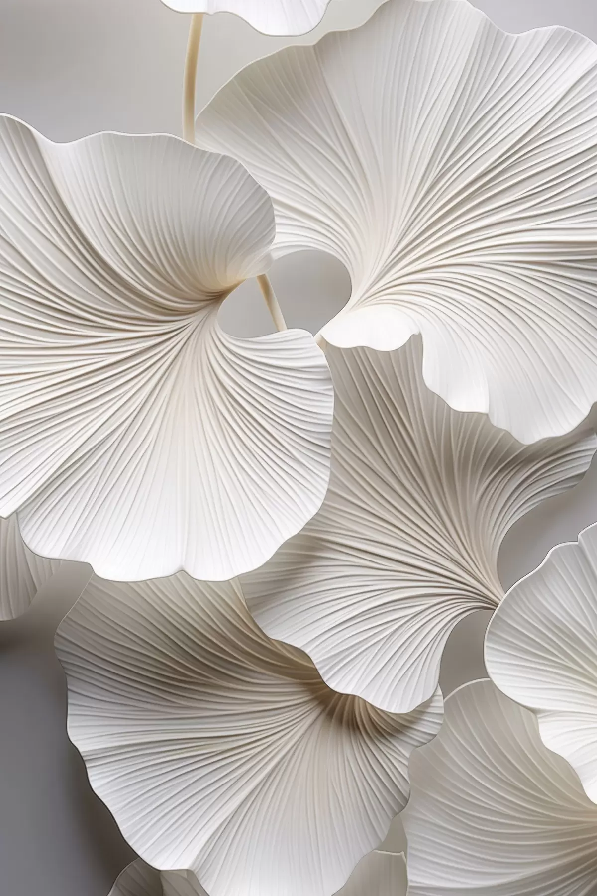 Poster Witte ginkgo biloba-bladeren met gedetailleerde nerven, zachte verlichting, elegant en minimalistisch ontwerp met textuur N° f46705