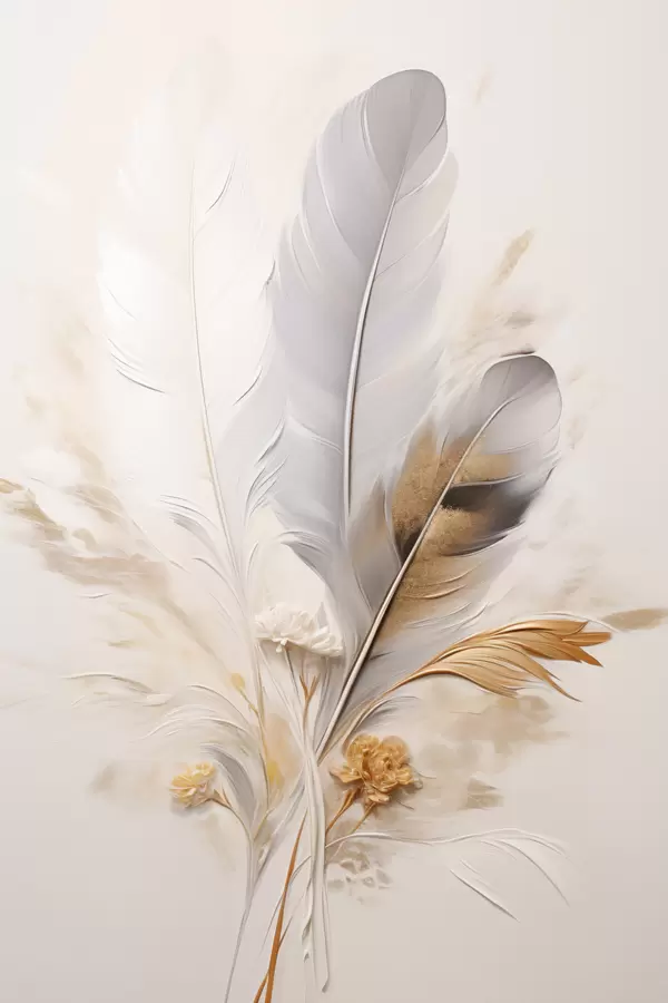 Poster Abstracte veren, omgeven door beige en bruine pluimen, zacht en delicaat, op een lichtbeige achtergrond N° f46712