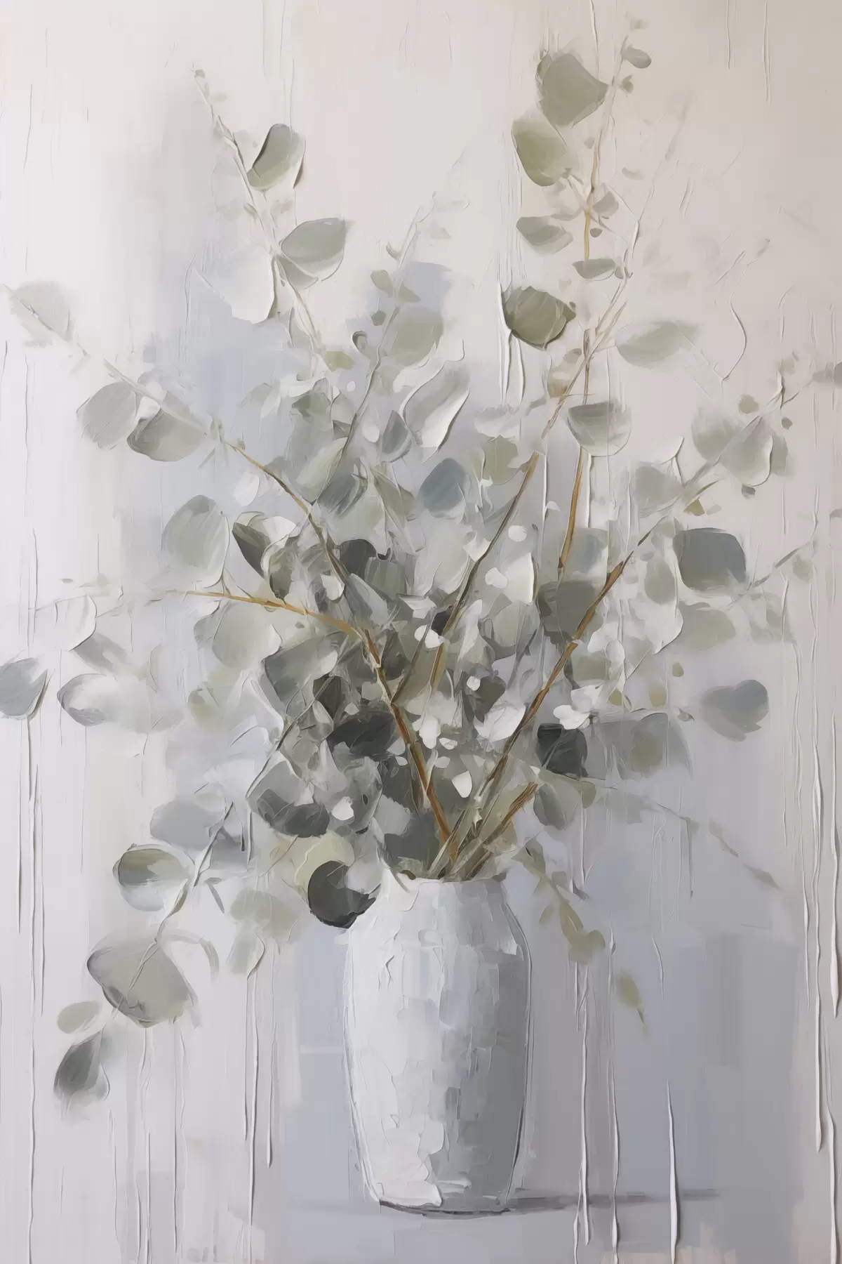 Poster Takken met bladeren in een vaas, imitatie schilderij N° f46720
