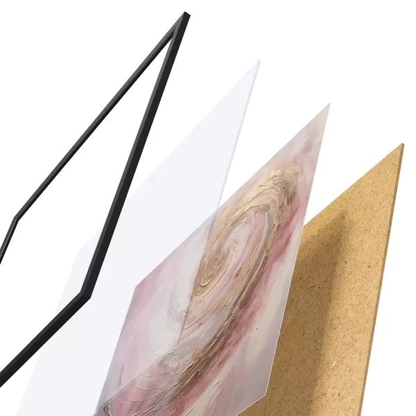 De poster bestaat uit een frame, plexiglas, geprinte afbeelding en spaanplaat achterkant. De poster kan meteen aan de muur worden gehangen dankzij de bevestigingen op de achterkant.
