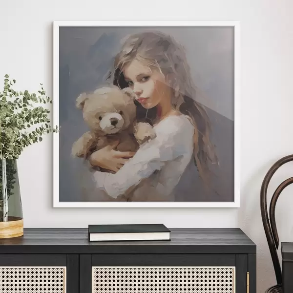 Poster Meisje met een speelgoedbeer, imitatie schilderij N° f46746