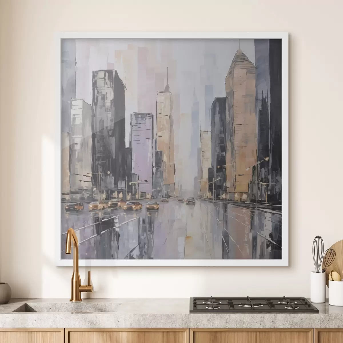 Poster Abstracte imitatie van een stadsgezicht uit de schilderkunst N° f46753