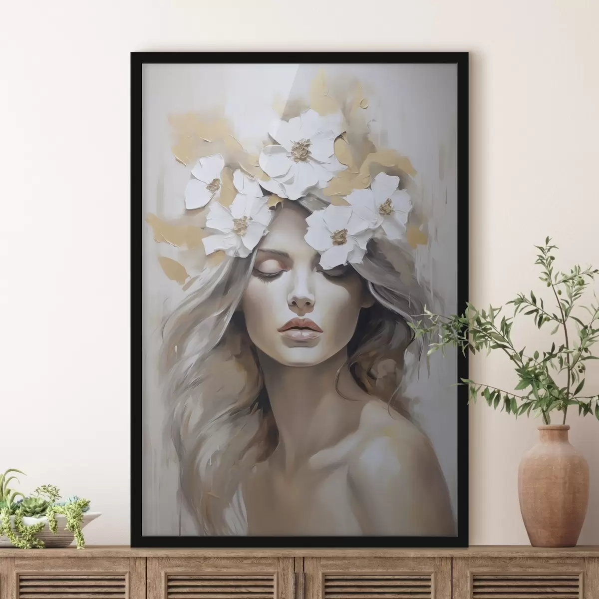 Poster Abstract portret van een meisje met bloemen N° f46757