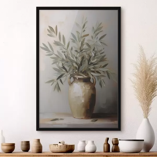 Poster Olijftakken in een vaas imitatie schilderij N° f46758