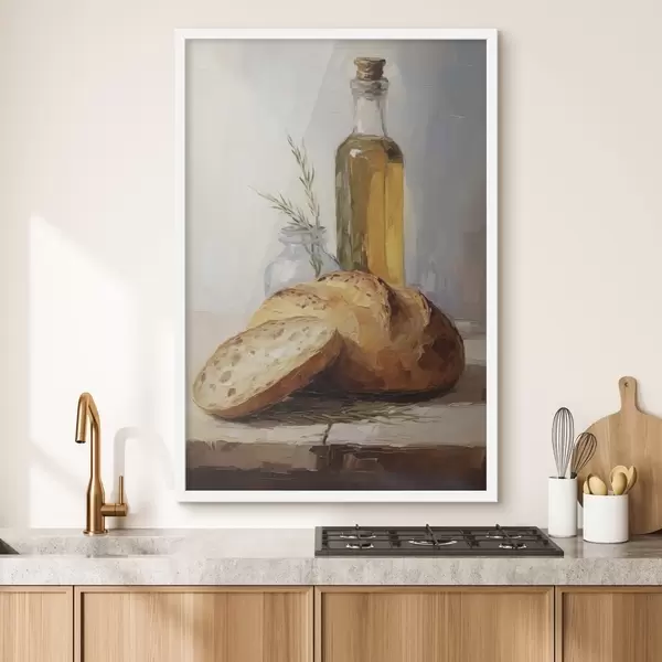 Poster Brood en een fles olie, imitatie schilderij N° f46759