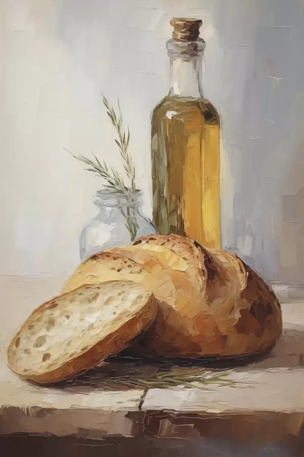 Poster Brood en een fles olie, imitatie schilderij f46759