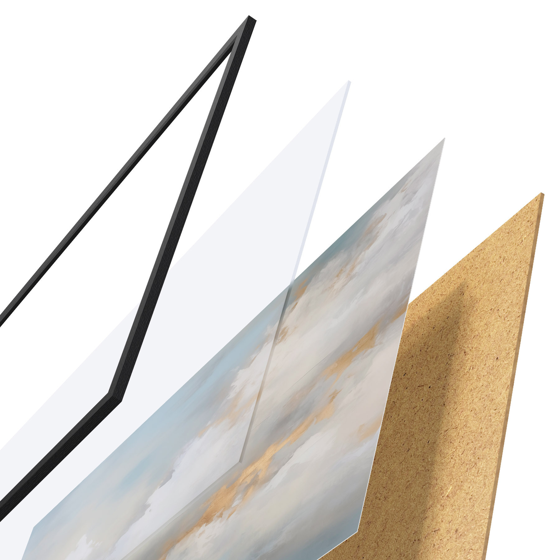 De poster bestaat uit een frame, plexiglas, geprinte afbeelding en spaanplaat achterkant. De poster kan meteen aan de muur worden gehangen dankzij de bevestigingen op de achterkant.