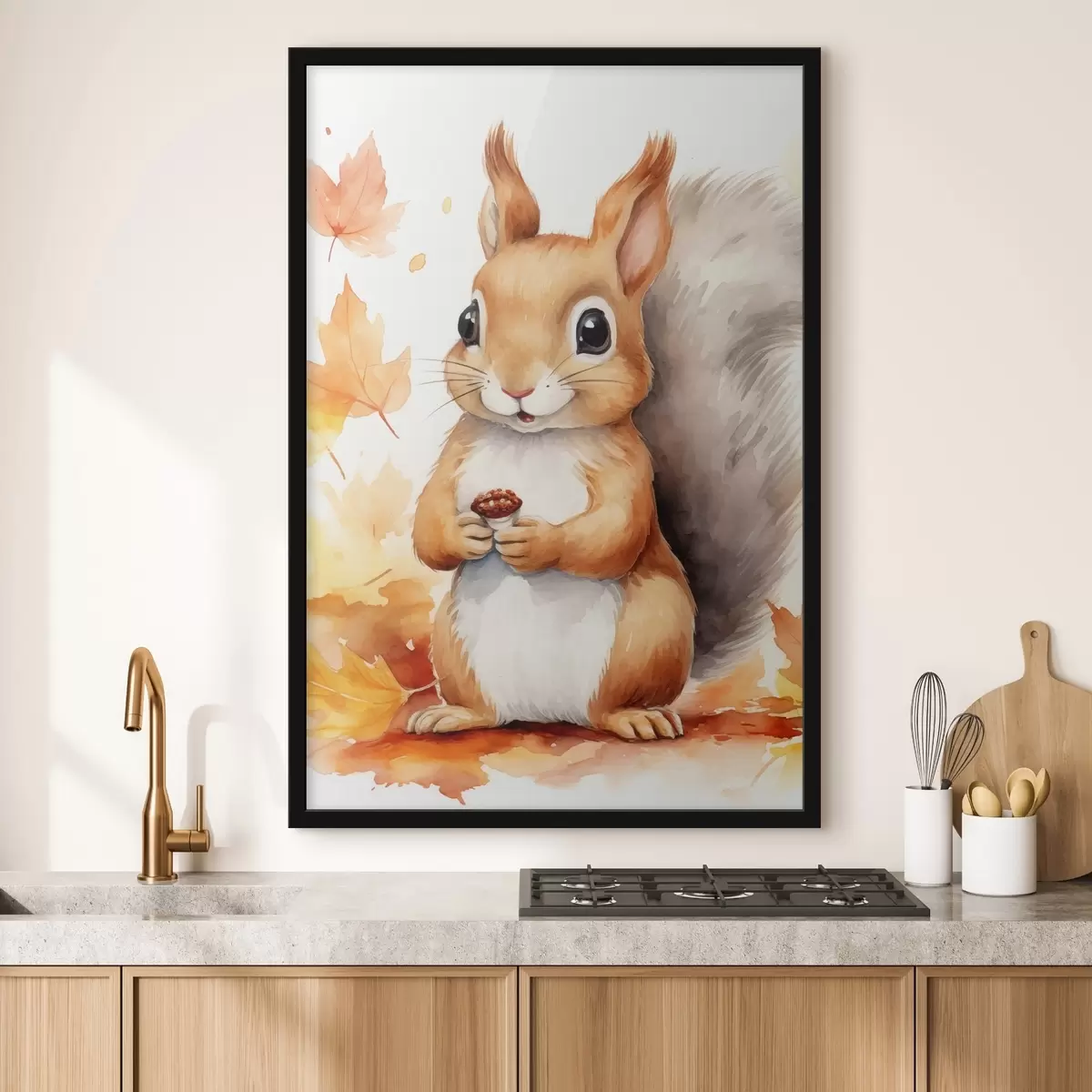 Poster Schattige eekhoorn, imitatie aquarel N° f46766