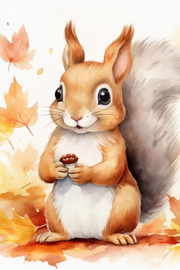 Poster Schattige eekhoorn, imitatie aquarel N° f46766