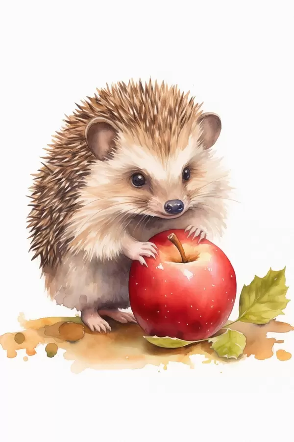 Poster Egel en appel, imitatie-aquarel N° f46769