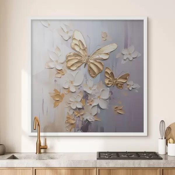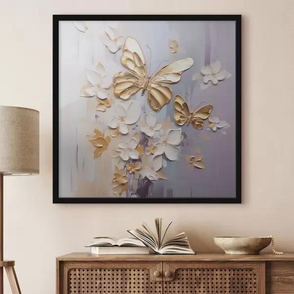 Poster Schilderij met imitatie van vlinders en bloemen f46828