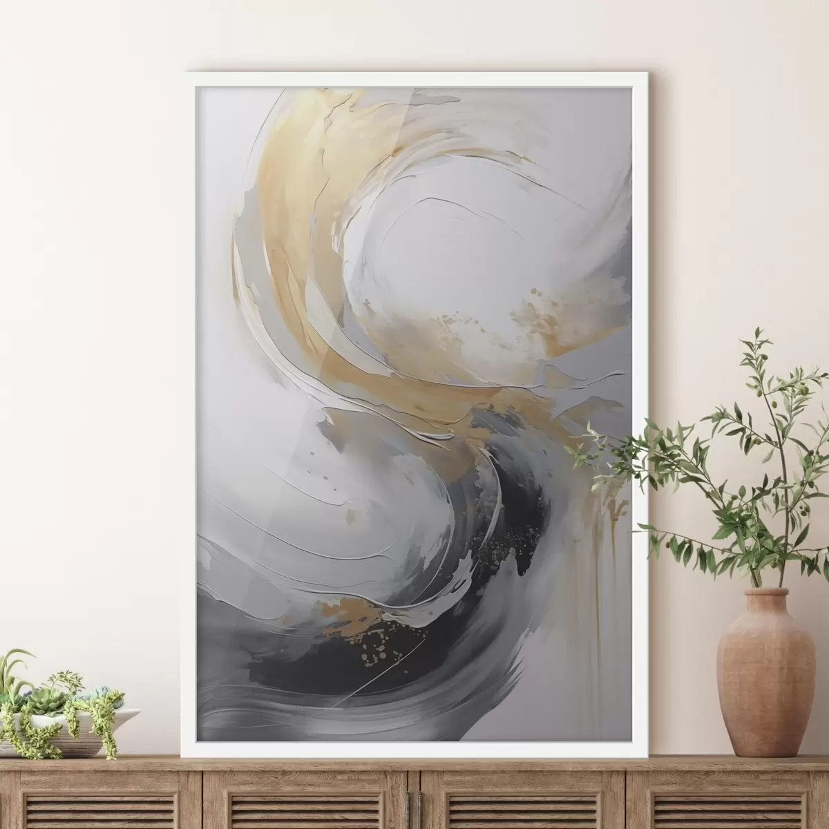 De poster bestaat uit een frame, plexiglas, geprinte afbeelding en spaanplaat achterkant. De poster kan meteen aan de muur worden gehangen dankzij de bevestigingen op de achterkant.
