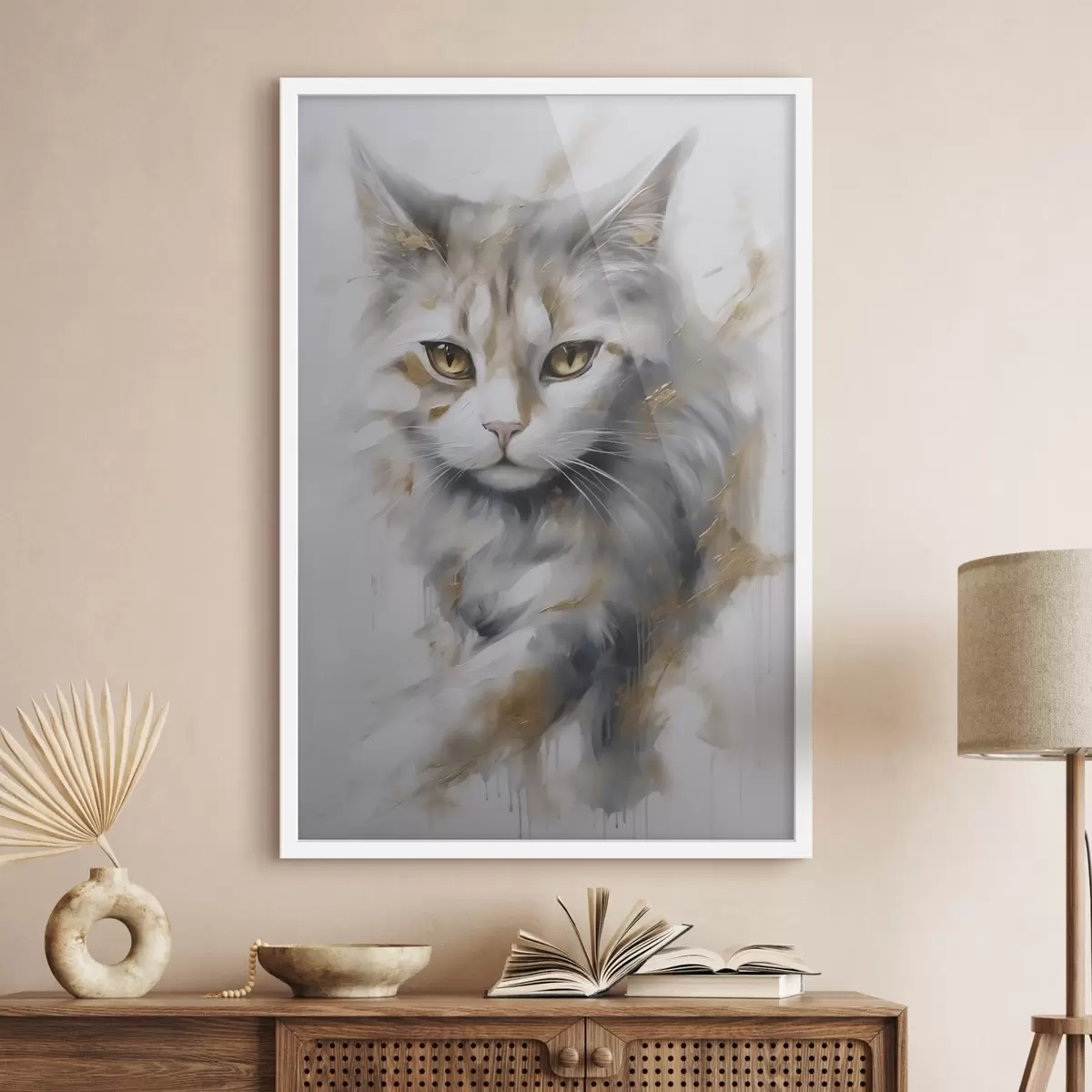 Je kunt het schilderij ophangen aan schroeven. Hiervoor leveren we bevestigingen bij onze foto's, zodat je de foto gemakkelijk kunt ophangen.