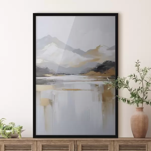Poster Abstracte imitatie van een berglandschap uit de schilderkunst f46841