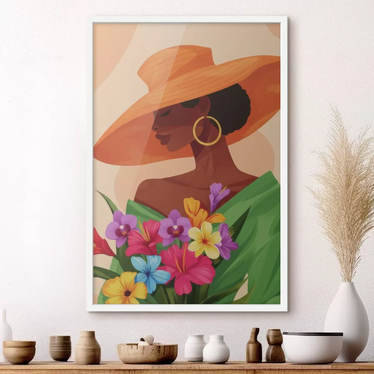 Poster Meisje met hoed en bloemen N° f46843