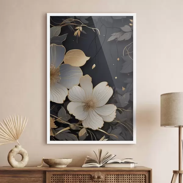 Poster Grote bloemen op een donkere achtergrond N° f46885