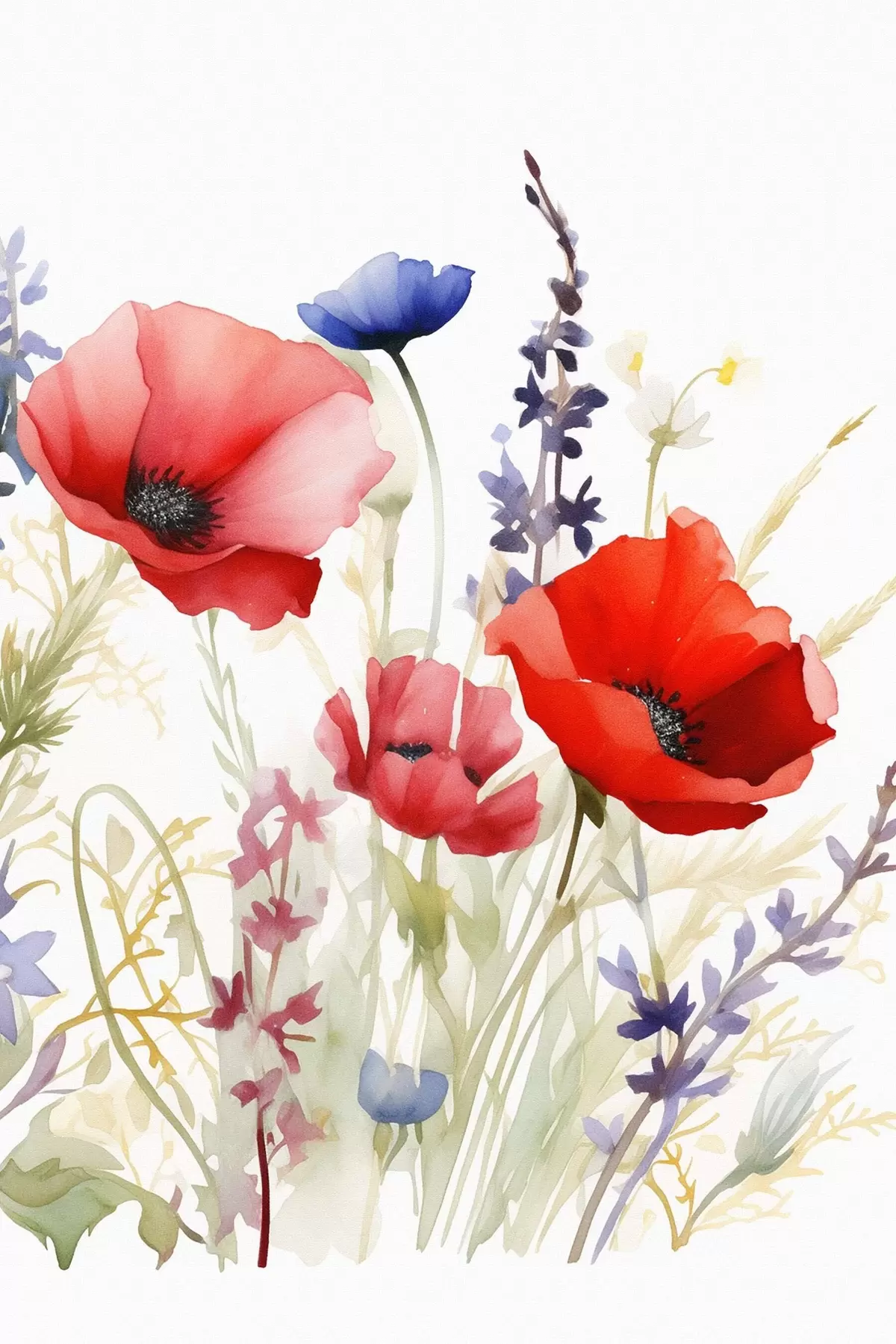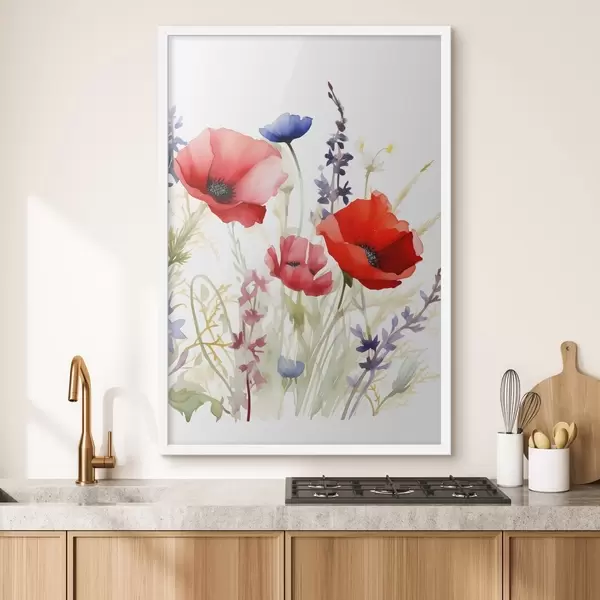 Poster Papaverbloemschermen, imitatie aquarel N° f46888