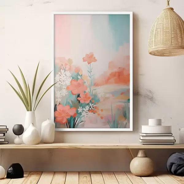 Poster Abstract bloemenlandschap in een roze-blauw kleurenpalet N° f46932