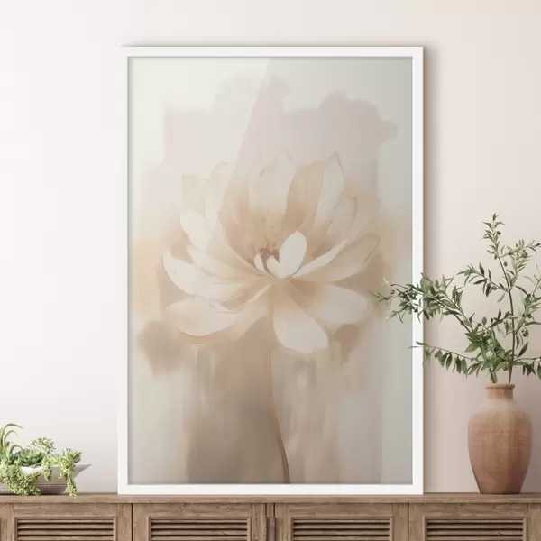 Poster Lotus met delicate schaduwen en een wazige achtergrond in een artistieke posterstijl N° f46937