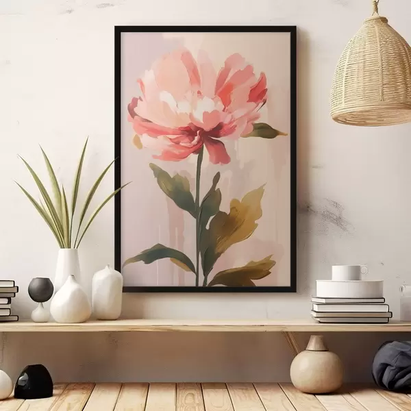 Poster Pioenroos met koraalroze bloemblaadjes in een moderne illustratiestijl N° f46948
