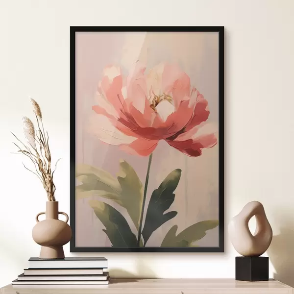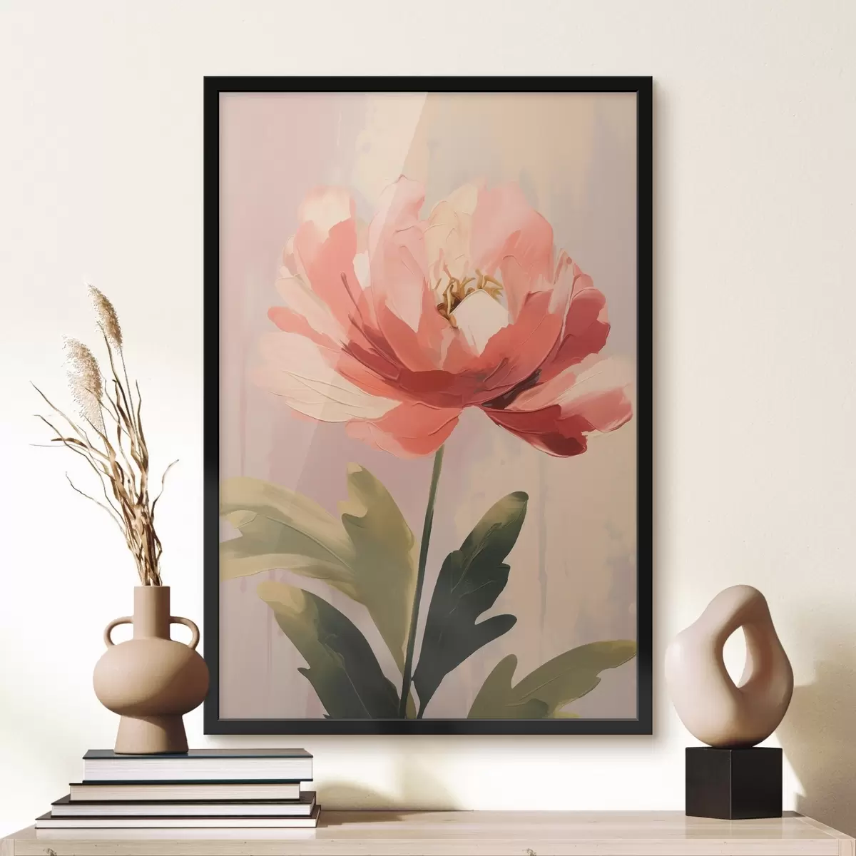 Poster Koraalpioenroos op een pastelkleurige achtergrond in een moderne illustratiestijl N° f46949