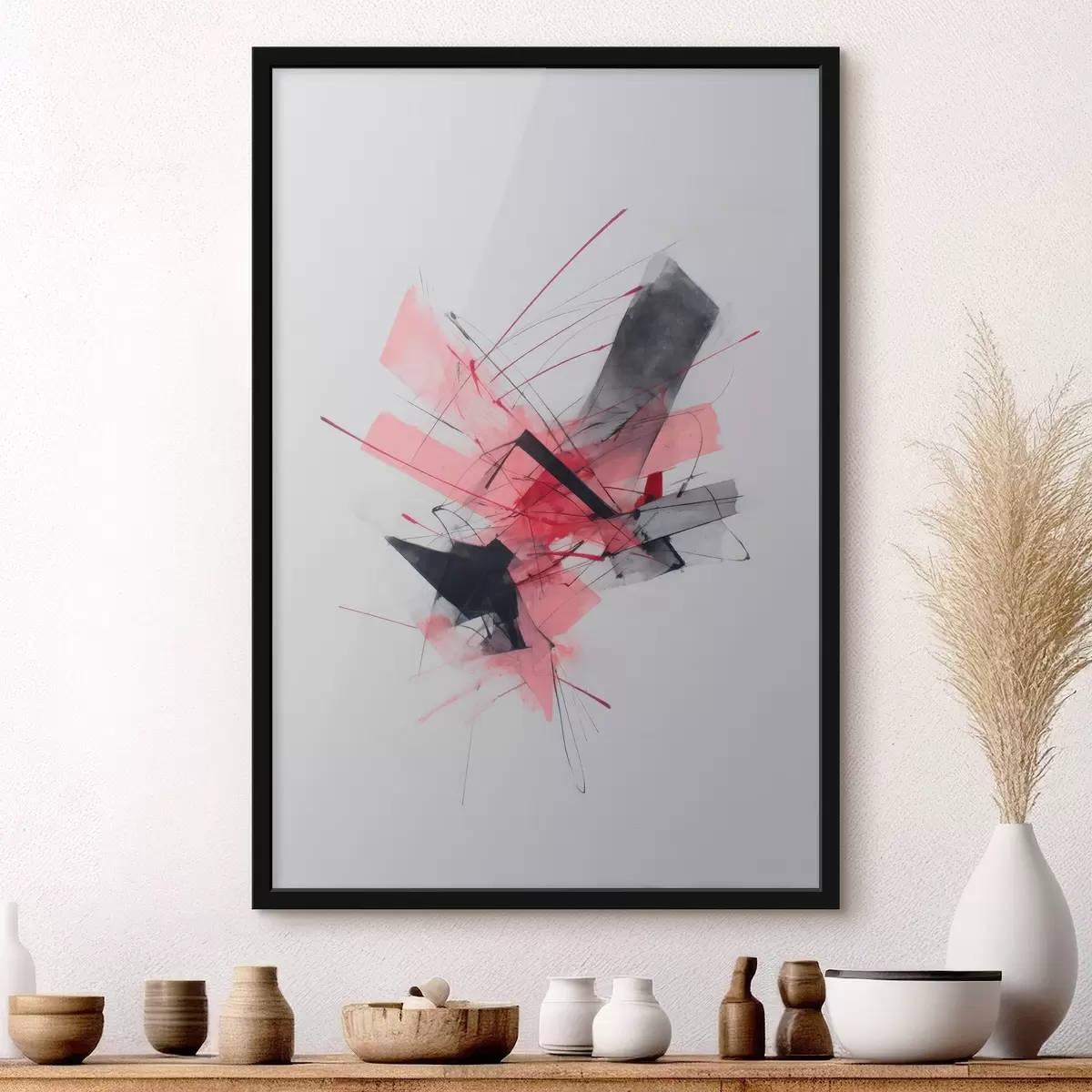 Poster Abstract met roze en zwarte geometrische elementen N° f46950