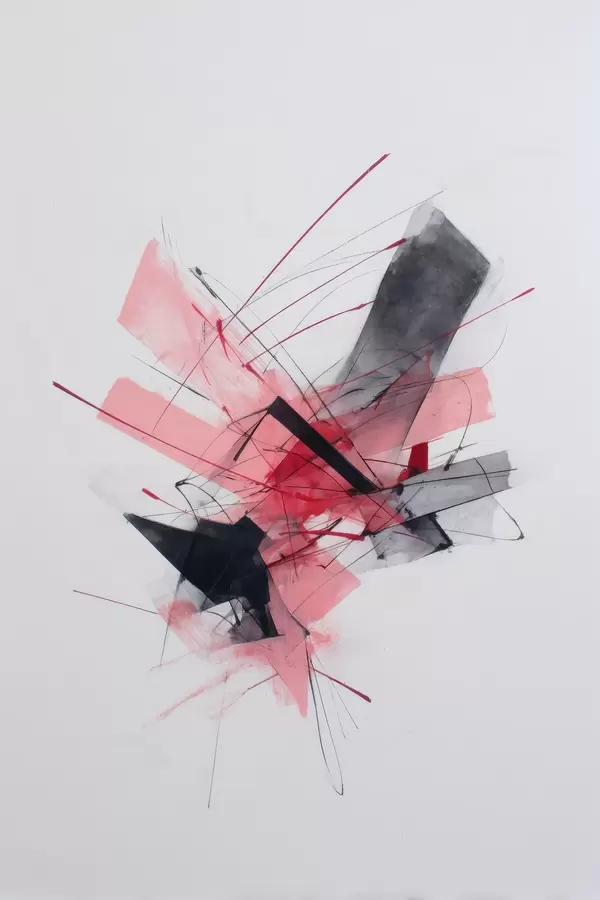 Poster Abstract met roze en zwarte geometrische elementen N° f46950