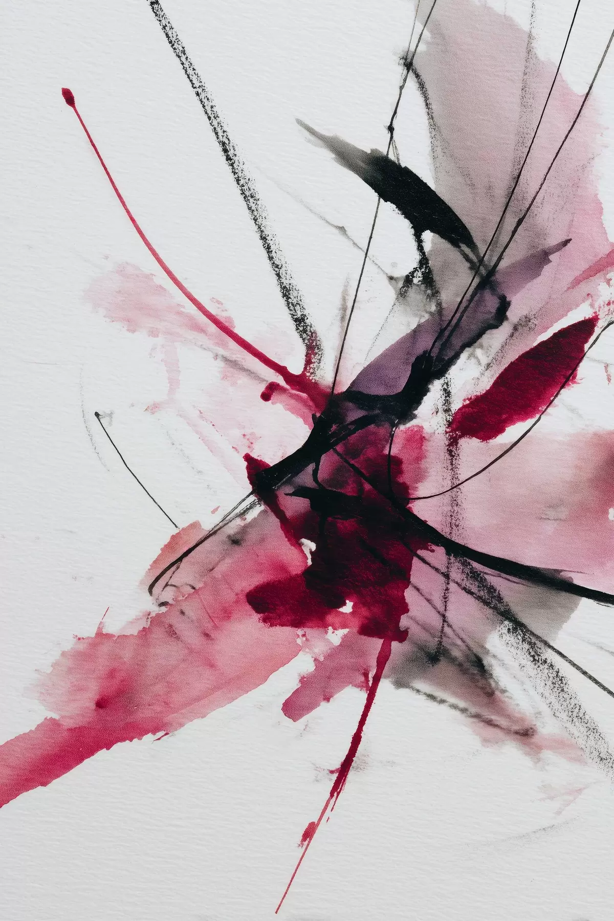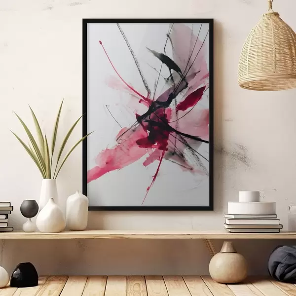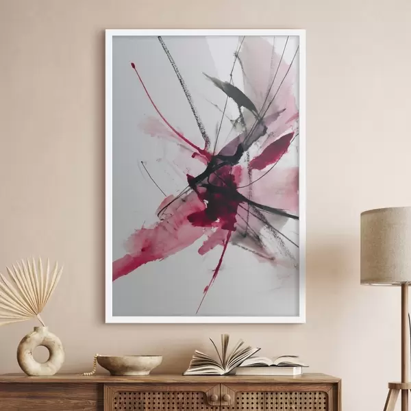 Poster Moderne compositie van lijnen en vlekken in aquarelstijl f46951