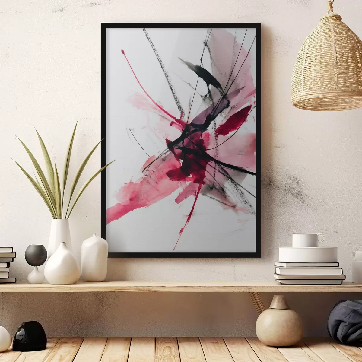 Poster Moderne compositie van lijnen en vlekken in aquarelstijl N° f46951