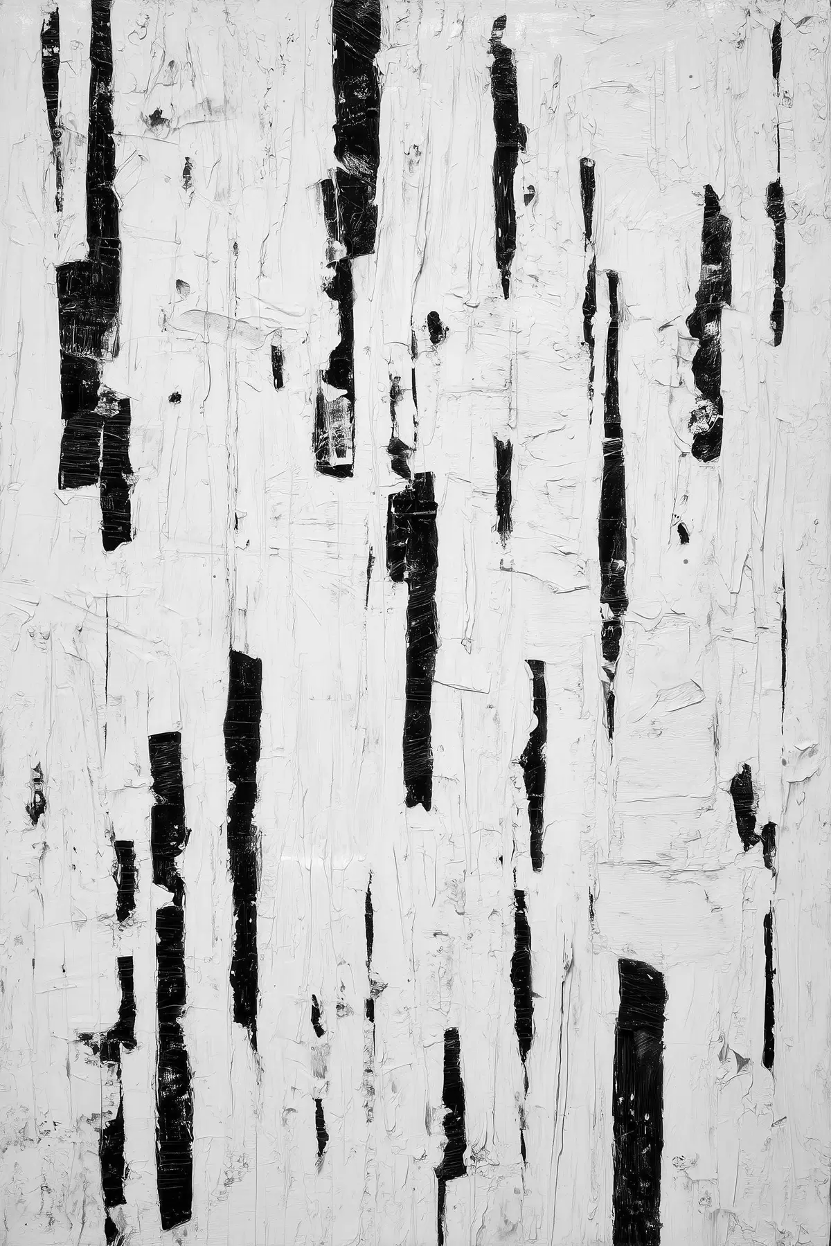 Poster Abstracte compositie met zwarte verticale penseelstreken op een witte achtergrond in olieverfstijl N° f46956