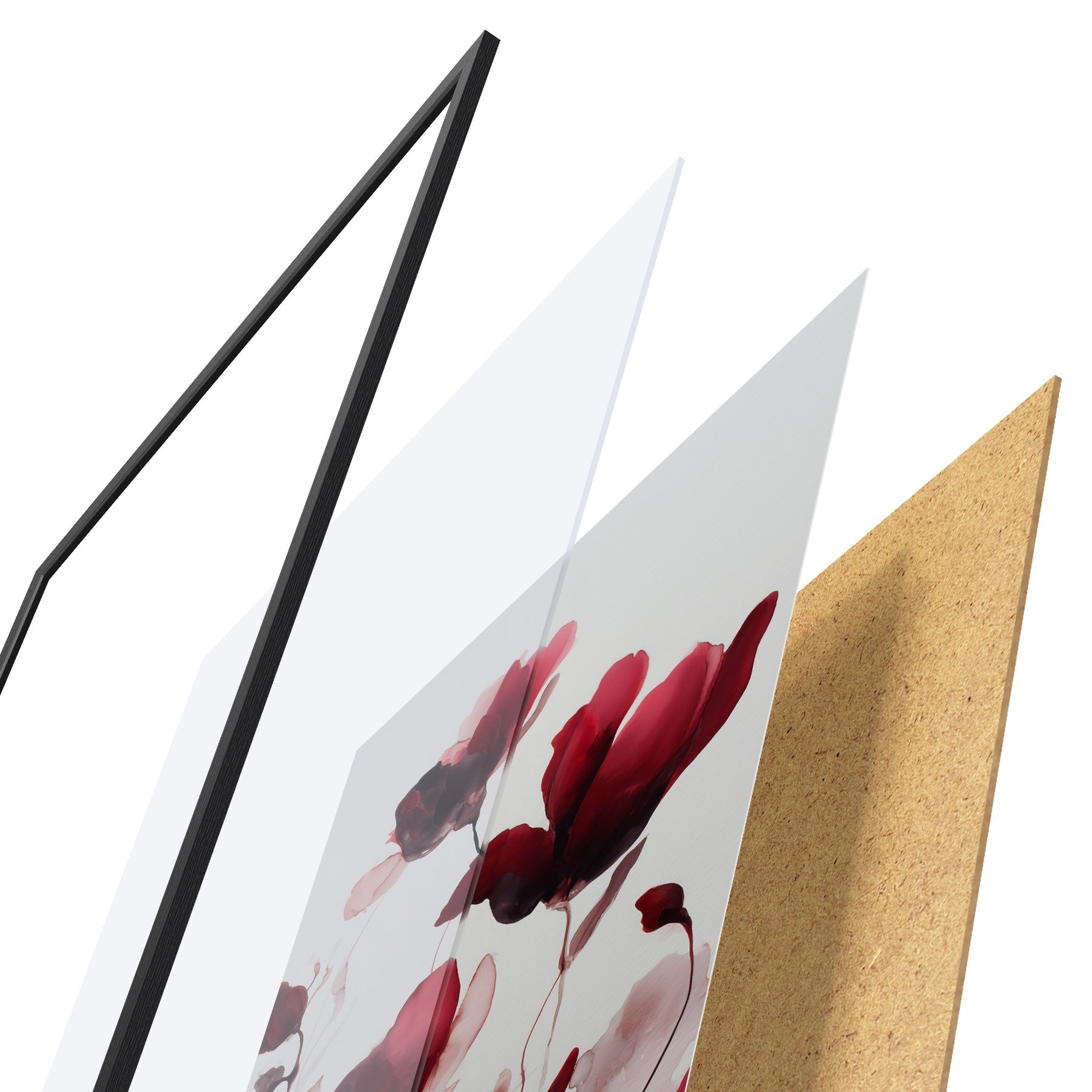 De poster bestaat uit een frame, plexiglas, geprinte afbeelding en spaanplaat achterkant. De poster kan meteen aan de muur worden gehangen dankzij de bevestigingen op de achterkant.
