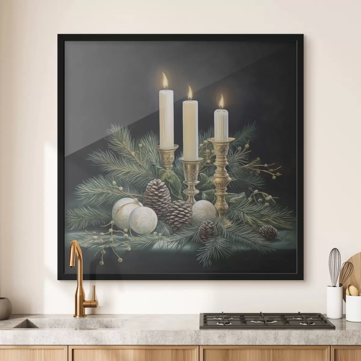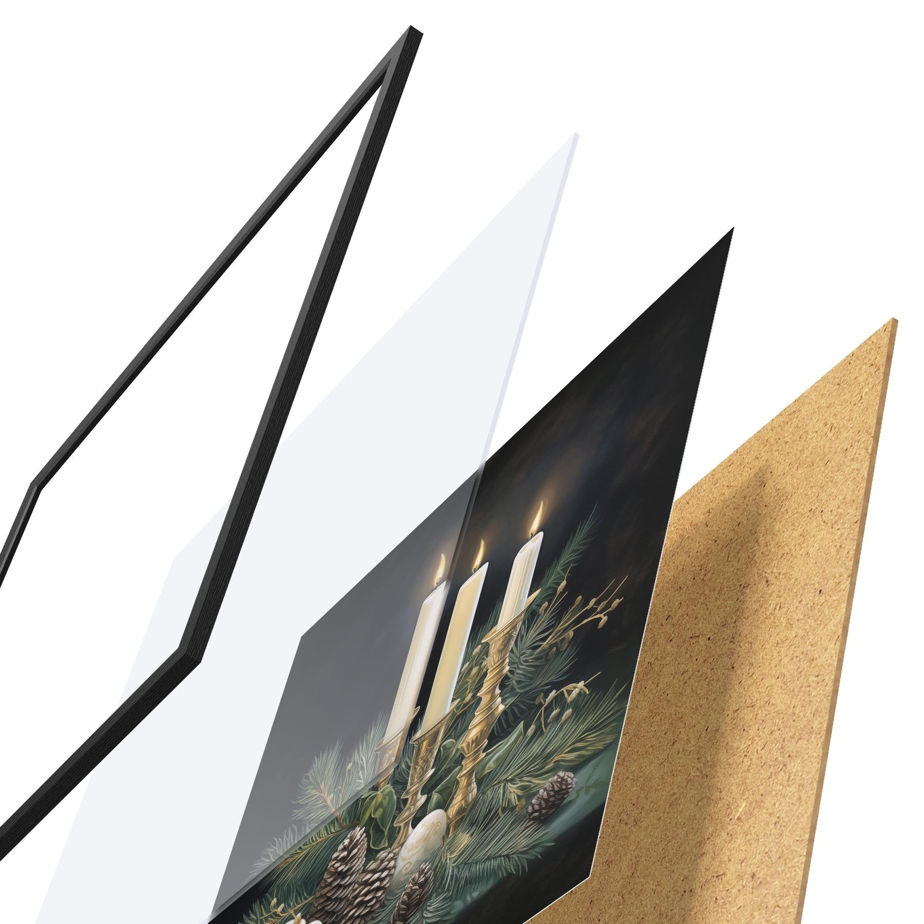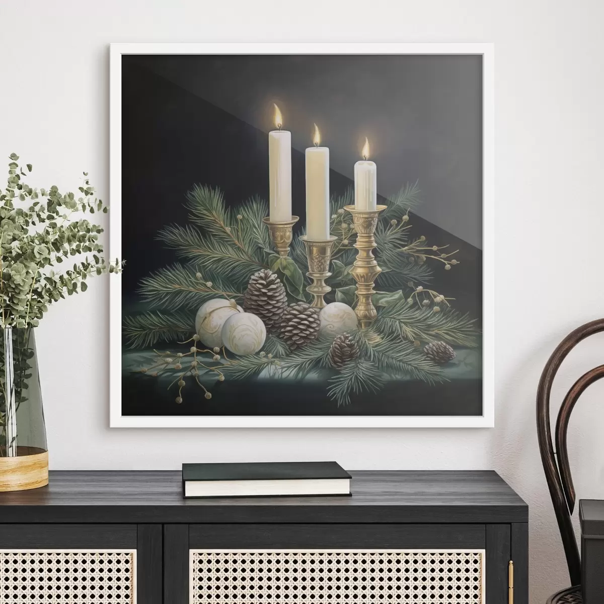 Poster Nieuwjaarsarrangement, dennenboom en kaarsen f46963