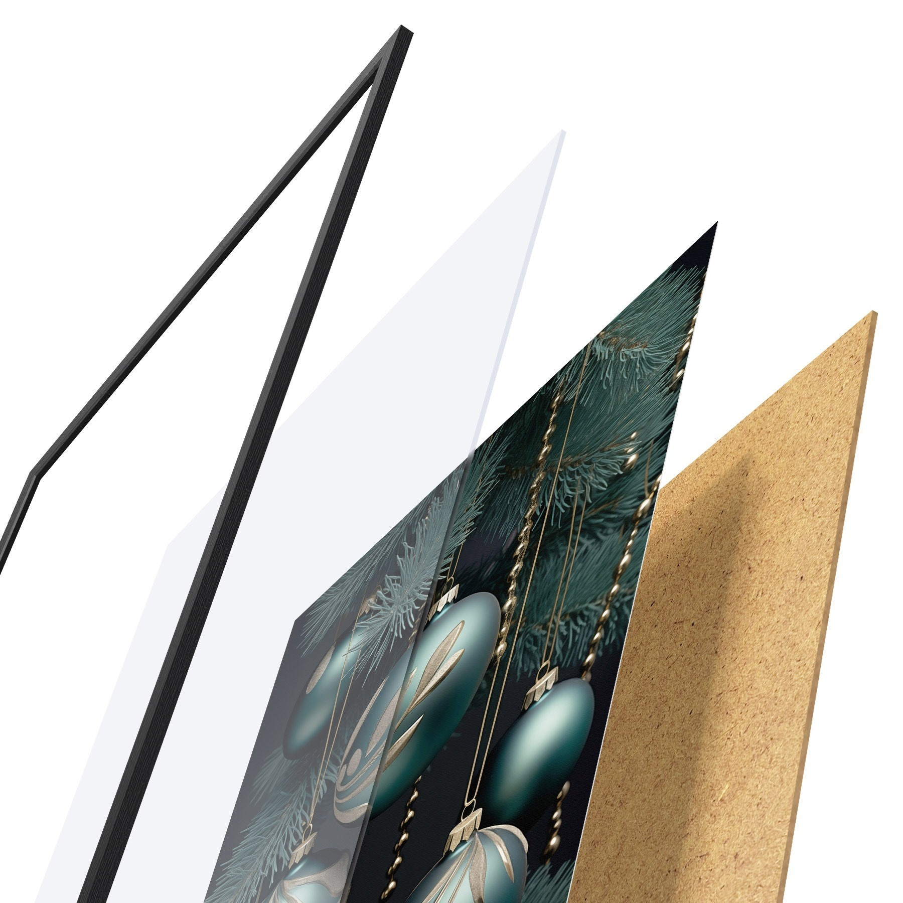 De poster bestaat uit een frame, plexiglas, geprinte afbeelding en spaanplaat achterkant. De poster kan meteen aan de muur worden gehangen dankzij de bevestigingen op de achterkant.