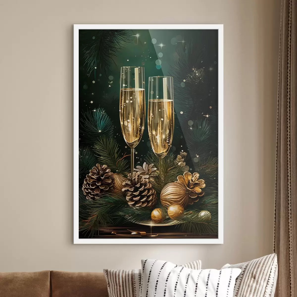 Poster Nieuwjaarscompositie, champagneglazen N° f46981