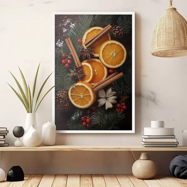 Poster Tekening van fruit, sinaasappel en kaneel N° f46986