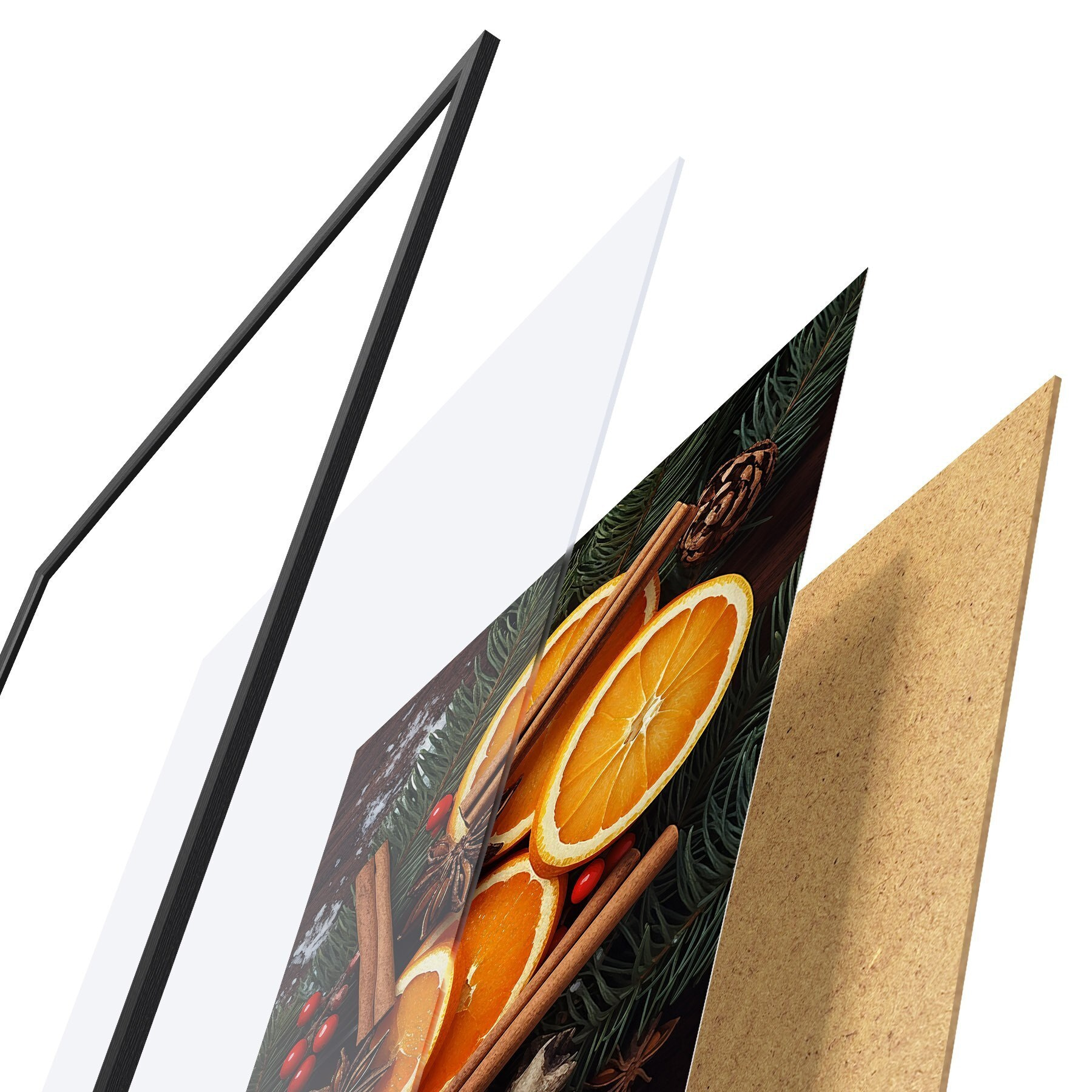 De poster bestaat uit een frame, plexiglas, geprinte afbeelding en spaanplaat achterkant. De poster kan meteen aan de muur worden gehangen dankzij de bevestigingen op de achterkant.